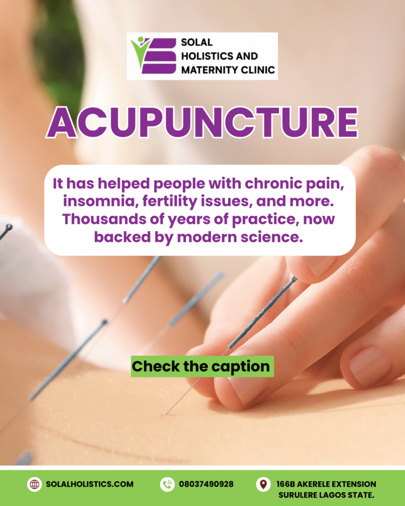 Book your acupuncture session today at Solal Holistics Maternity Clinic.